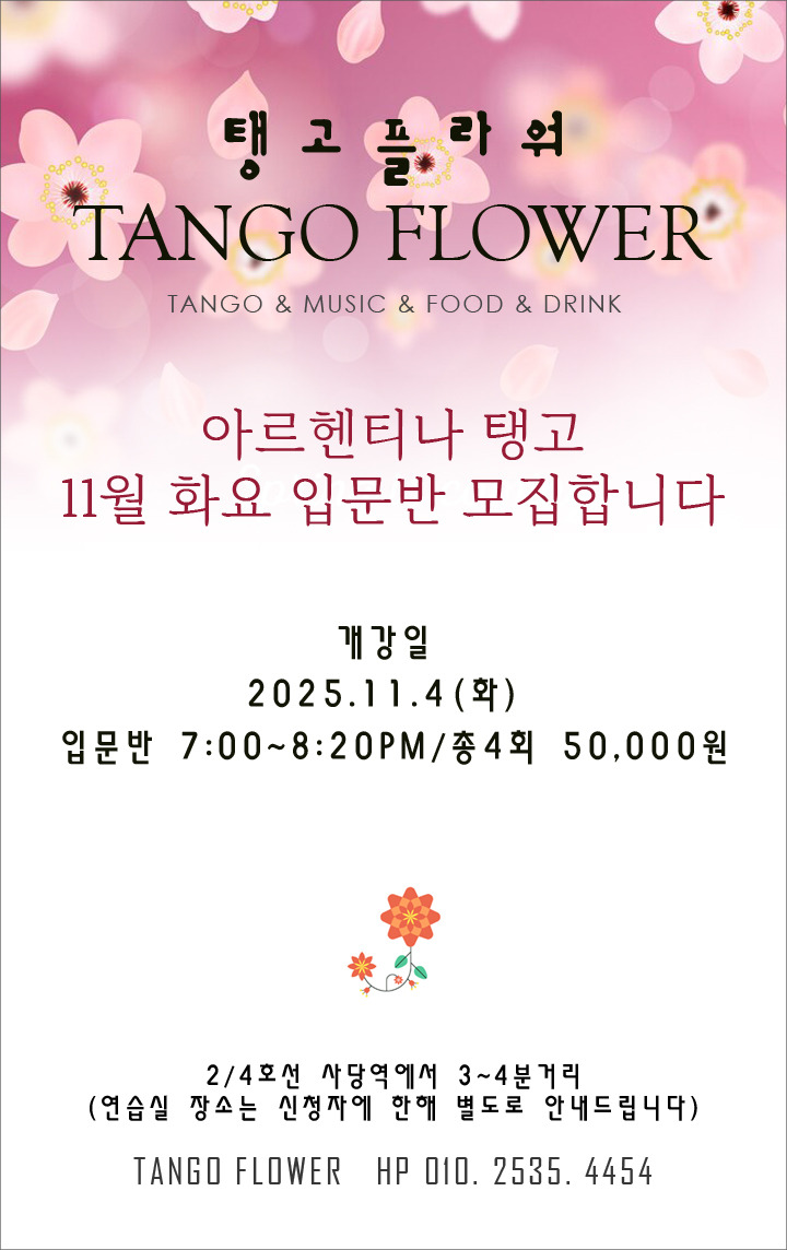 [레슨알림] 11월 사당 아르헨티나 탱고 화요입문반 레슨안내 드려요~