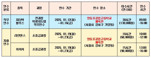 2026년 2월 현재 요일별로 진행되고 있는 수업을 안내합니다.