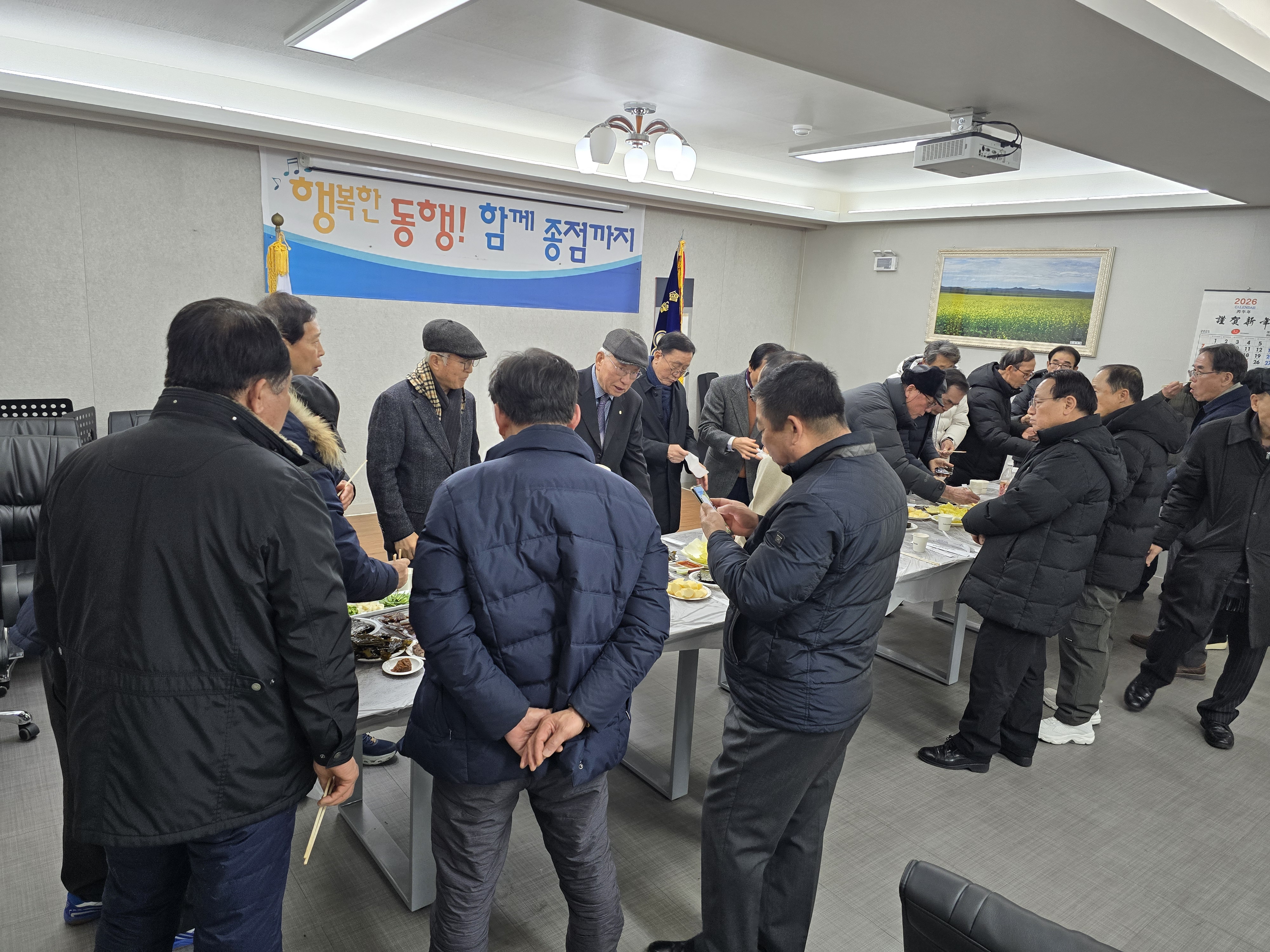 이후 참석 회원들은 준비된 과메기, 떡, 사과 등 다과를 나누며 서로의 건강과 행복을 기원하는 화기애애한 송년의 시간을 보냈다.