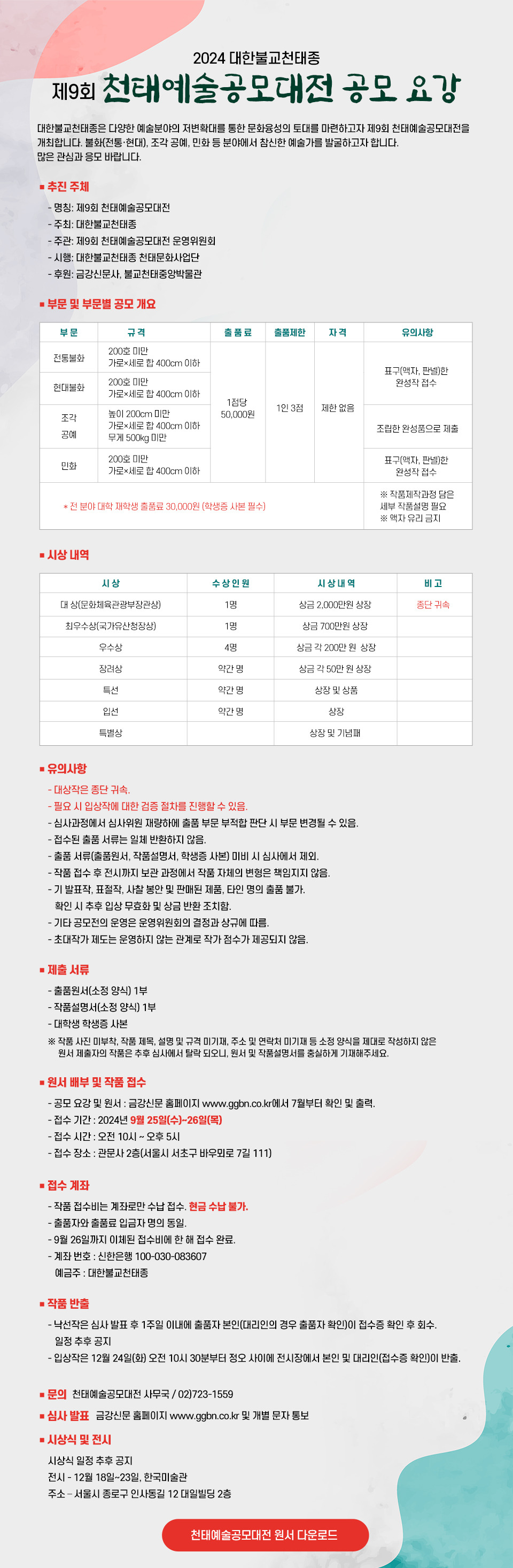 제9회 천태예술공모대전 공모안내-마감 9월26일 작성시간24.08.23|조회수33 목록 댓글 0 글자크기 작게가 글자크기 크게가 다음검색 현재 게시글 추가 기능 열기 북마크 신고 센터로 신고 댓글 댓글 0 댓글쓰기 답글쓰기 댓글 리스트