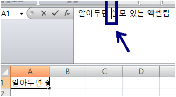 A1셀의 문자열중에서 원하는 위치에 커서를 두고서