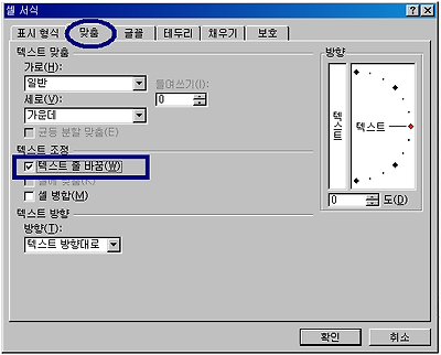 "맞춤"탭을 클릭하여 "텍스트줄바꿈"에 체크하고 확인하면