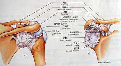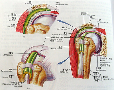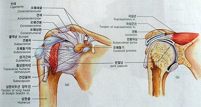 [견관절] (a)전면. (b)전면(관상절단면).
