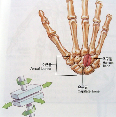 [평면관절- 수근간관절. 운동가능 방향을 나타내고 있음.]