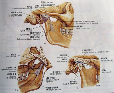 [악관절] (a)외측면. (b)내측면. (c)시상면.