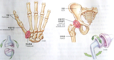 ◎),안관절(안장관절): 승마시 안장에 걸터앉는 것과 같은 형태로 단단히