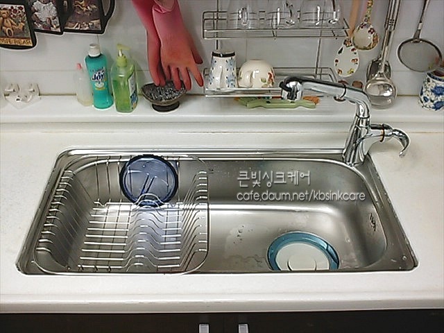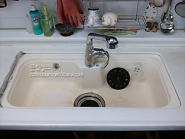 싱크볼이 떨어져서 은박지와 테잎을 붙여서 물이 새는 걸 막고 계십니다.