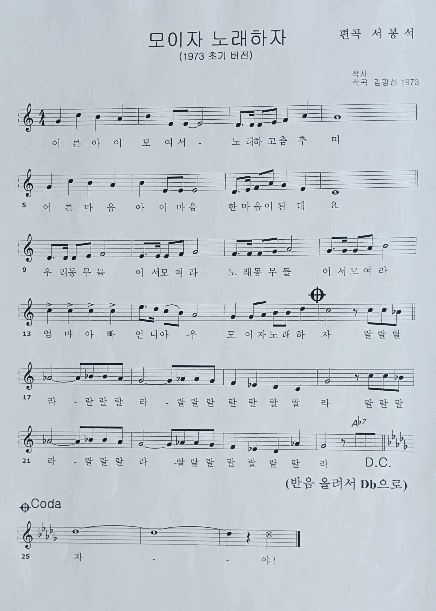 모이자 노래하자 (작사: 작곡: 김강섭)