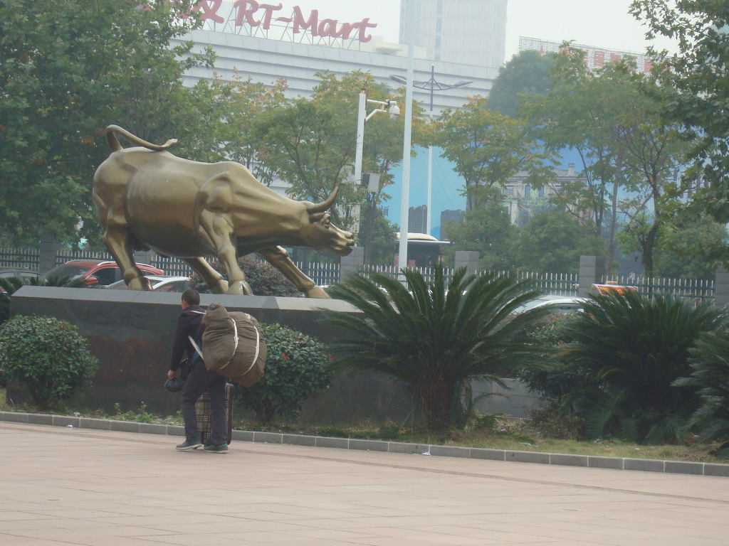황소 조각상이 있는 주장치처짠 九江汽車站(구강기차참) 시외버스 정류소에 도착 합니다.