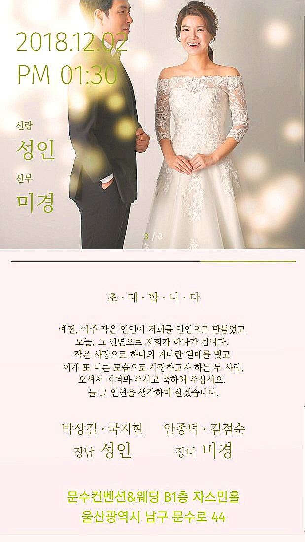 국지현(점옥) 친구의 장남 박성인군의 결혼 소식입니다