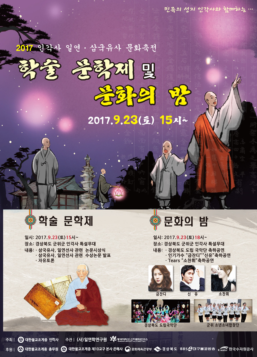 인각사 2017 일연.삼국유사 문화축전 행사 안내(9월23일 토요일 오후3시 특설무대) 작성자향기블루스카이|작성시간17.09.07|조회수41 목록 댓글 0 글자크기 작게가 글자크기 크게가 인각사 2017 일연.삼국유사 문화축전 행사 안내(9월23일 토요일 오후3시 특설무대)많은 관심과 동참 부탁드립니다. 다음검색 현재 게시글 추가 기능 열기 북마크 공유하기 신고 센터로 신고 댓글 댓글 0 댓글쓰기 답글쓰기 댓글 리스트