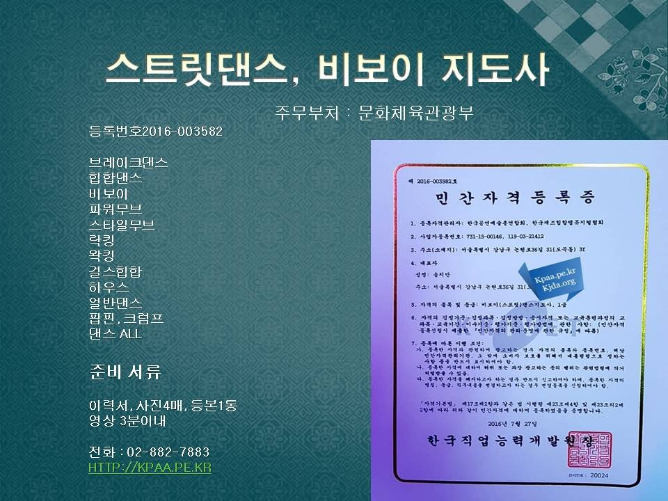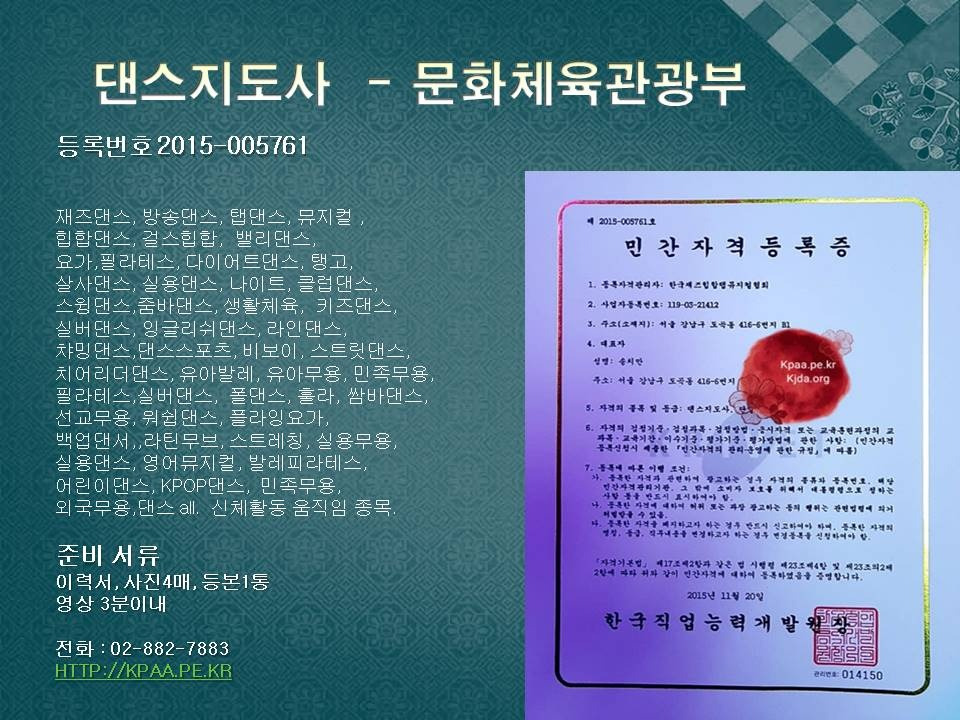 무용,댄스,댄스ALL 1급 자격증, 지사, 생활체육,엔터테인먼트 무용,사교,방송댄스,KPOP,재즈,실용댄스,라인,줌바,스포츠,밸리,스트