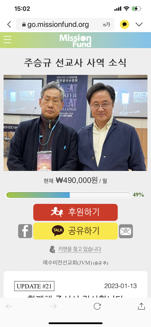 작성자JooSeungKyu 작성자 본인 여부 작성자 작성시간 23.05.10 https://go.missionfund.org/joshua108090