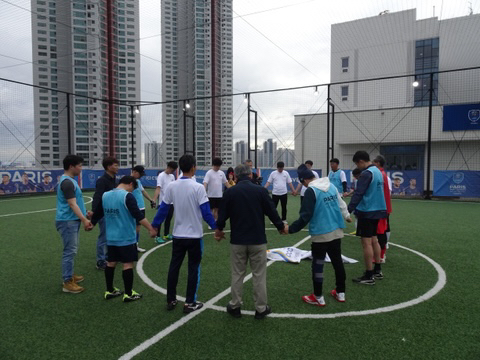 도쿄 단기선교축구팀의 기도회와 백문일답 구호제창