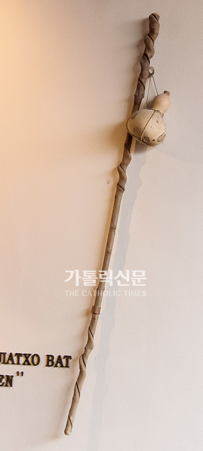 - 스페인 로욜라에 자리한 이냐시오 성인 생가 벽에 걸려있는 순례자의 지팡이.