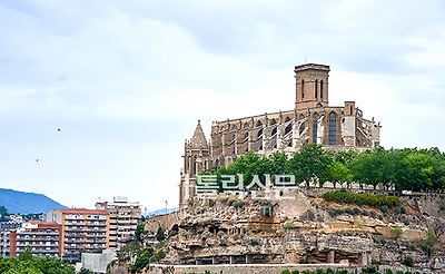 - 마을에서 올려다본 이냐시오 성인의 동굴 성당 전경. 옛 동굴 위에 성당과 예수회 국제 영성센터 등을 지어
