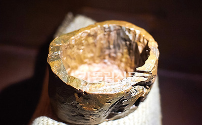 - 이냐시오 성인이 실제 사용했던 탁발통. 스페인 만레사 동굴경당 앞 홀에 전시돼 있다.