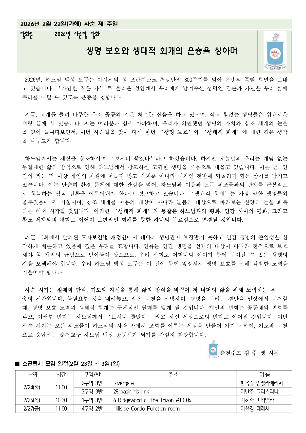 제1618호 사순 제1주일(2026.02.22) 작성자레지나^^|작성시간26.02.21|조회수61 목록 댓글 0 글자크기 작게가 글자크기 크게가 제1618호 사순 제1주일(2026.02.22).pdf1.33MB 첨부파일첨부된 파일이 5개 있습니다. jpg 파일 제1618호 사순 제1주일(2026.02.22)_page-0002.jpg 다운로드 jpg 파일 제1618호 사순 제1주일(2026.02.22)_page-0003.jpg 다운로드 jpg 파일 제1618호 사순 제1주일(2026.02.22)_page-0004.jpg 다운로드 jpg 파일 제1618호 사순 제1주일(2026.02.22)_page-0001.jpg 다운로드 pdf 파일 제1618호 사순 제1주일(2026.02.22).pdf 다운로드 다음검색 현재 게시글 추가 기능 열기 북마크 공유하기 신고 센터로 신고 댓글 댓글 0 댓글쓰기 답글쓰기 댓글 리스트