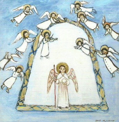 하늘에서 고인을 즐겁게 맞이하는 천사들