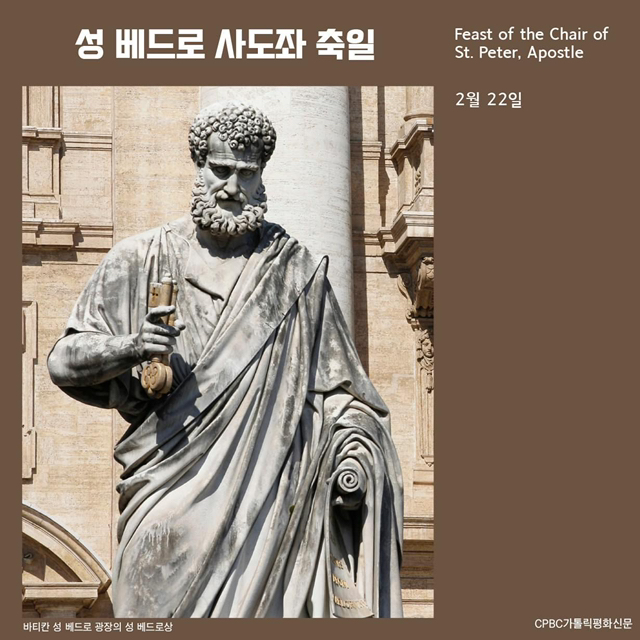 오늘(2월 22일)은 '성 베드로 사도좌 축일'입니다. 이날은 예수 그리스도께서 베드로 사도를 선택하시어 당신의 지상 대리자로 삼으신 것을 기념하는 날입니다. 본디 고대 로마에서 2월 22일은 가족 가운데 죽은 이를 기억하는 날이었습니다. 그래서 그리스도인들은 이 관습에 따라 4세기 무렵부터 이날 베드로 사도와 바오로 사도의 무덤을 참배했습니다. 이것이 성 베드로 사도좌 축일의 기원입니다.