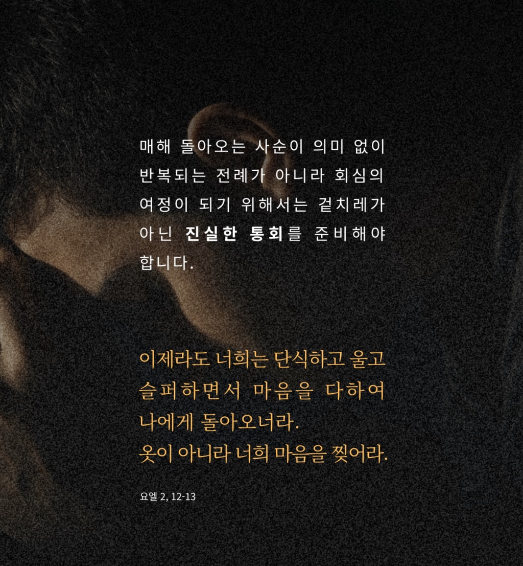 다가오는 사순시기를 준비하며 작성자운영자|작성시간26.02.12|조회수55 목록 댓글 0 글자크기 작게가 글자크기 크게가 다가오는 사순시기를 준비하며 다음검색 현재 게시글 추가 기능 열기 북마크 공유하기 신고 센터로 신고 댓글 댓글 0 댓글쓰기 답글쓰기 댓글 리스트