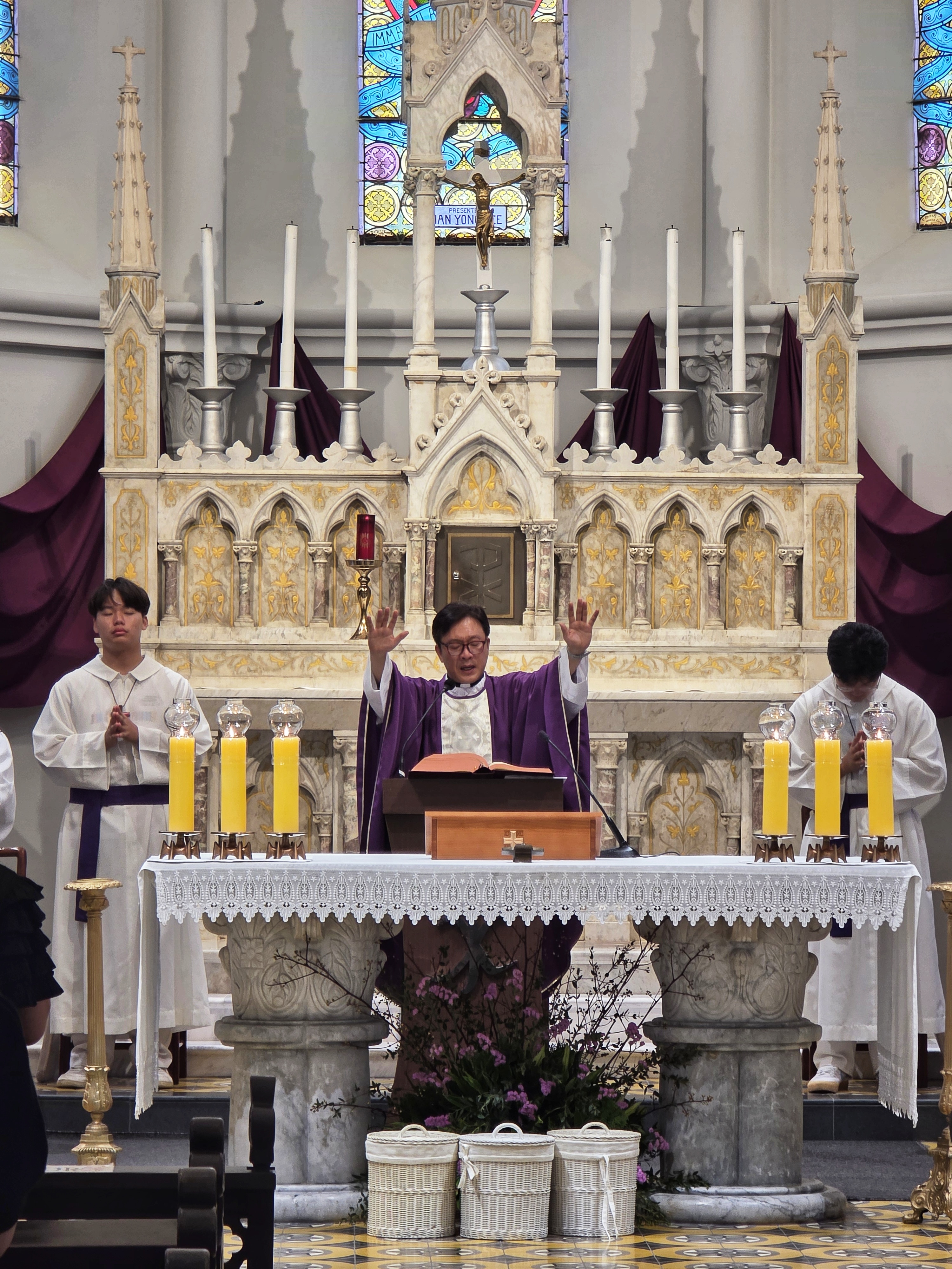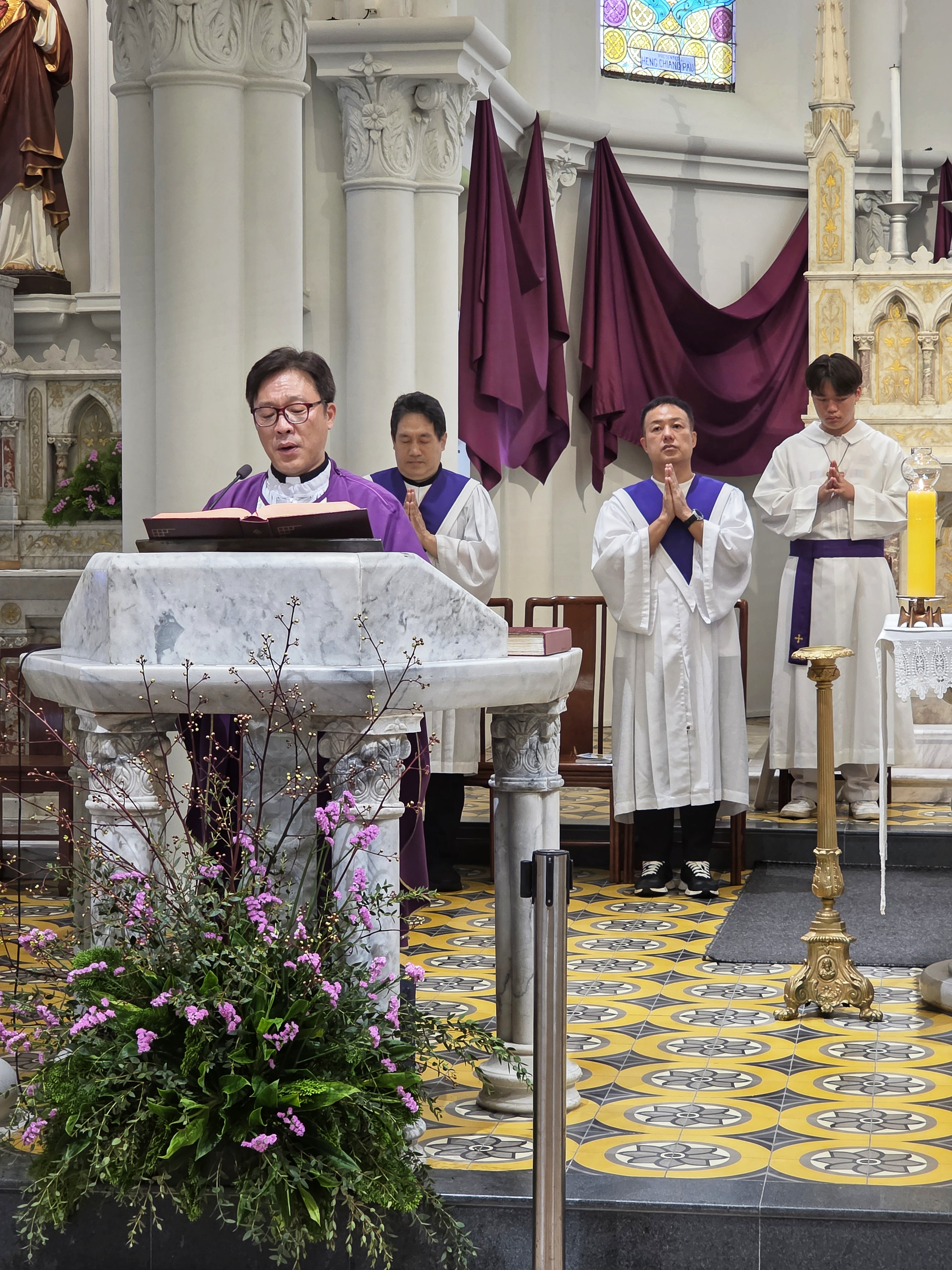 오늘은 사순 제4주일입니다. 교회는 오늘 전례에서 부활의 기쁨을 미리 맛보는 기회를 가집니다. 입당송에 나오는 “즐거워하여라, 예루살렘아.”라는 성경 말씀에 그 정신이 잘 드러나 있습니다. 이 기쁨은 희생과 극기를 실천하며 주님 수난의 길에 기꺼이 함께하려는 이들만이 느낄 수 있는 기쁨입니다. 이 거룩한 미사를 통하여 사순 시기에 요구되는 우리 신앙인의 자세를 더욱 새롭게 합시다.