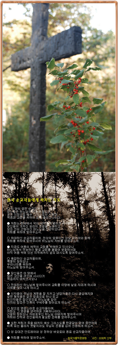 작성자물레방아 작성시간 08.09.02 순교자 성월, 순교자의 생명이 헛되지 않고 순교자의 삶을 본받게하소서.