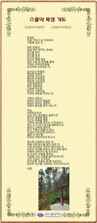 작성자단비 작성시간 08.09.03 순교성인의 정신이 내안에 살아 숨쉬고, 그 정신으로 당신의 길을 걸으며 내 안에 살아숨쉬는 모두에게 순교하는 삶이도록.... 그렇게 살게하소서.