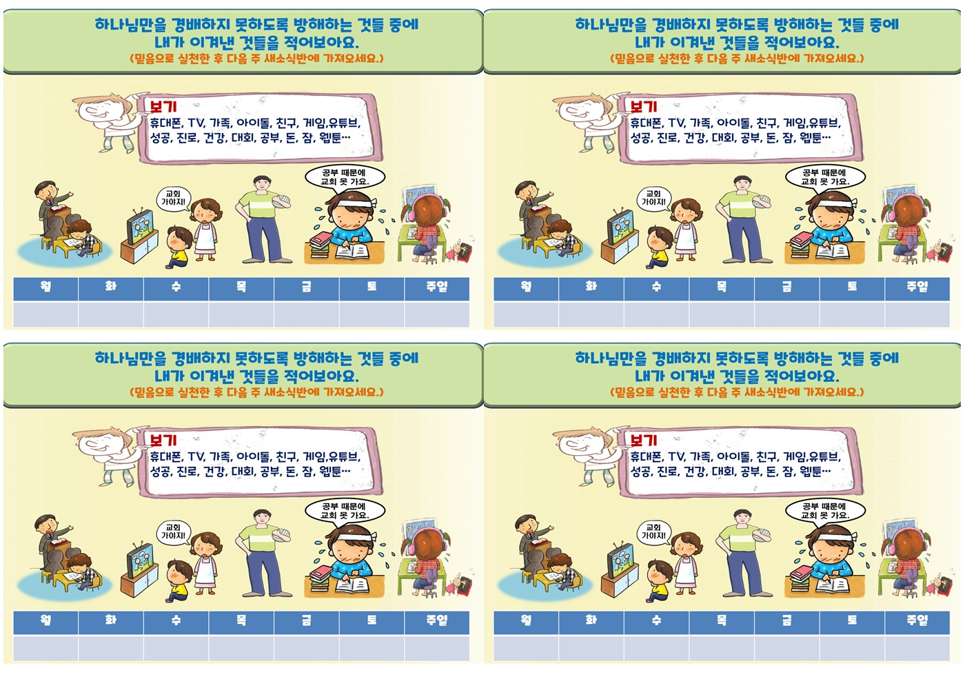 25.10.20 GNC 주보 및 교안 작성자CEF 동부산지회|작성시간25.10.21|조회수50 목록 댓글 0 글자크기 작게가 글자크기 크게가 25.10.20 공과 - 8과 우상에게로 돌아선 백성.hwp250.50KB25.10.20 주보 - 8과 우상에게로 돌아선 백성.hwp1.04MB복음메세지.pdf732.82KB8주 찬양뽑기.hwp28.00KB 첨부파일첨부된 파일이 9개 있습니다. jpg 파일 모세 8과 상기물001.jpg 다운로드 jpg 파일 모세 8과 상기물002.jpg 다운로드 jpg 파일 KakaoTalk_20251021_152846179.jpg 다운로드 jpg 파일 KakaoTalk_20251021_152846179_01.jpg 다운로드 jpg 파일 성경.jpg 다운로드 hwp 파일 25.10.20 공과 - 8과 우상에게로 돌아선 백성.hwp 다운로드 hwp 파일 25.10.20 주보 - 8과 우상에게로 돌아선 백성.hwp 다운로드 pdf 파일 복음메세지.pdf 다운로드 hwp 파일 8주 찬양뽑기.hwp 다운로드 다음검색 현재 게시글 추가 기능 열기 북마크 공유하기 신고 센터로 신고 댓글 댓글 0 댓글쓰기 답글쓰기 댓글 리스트
