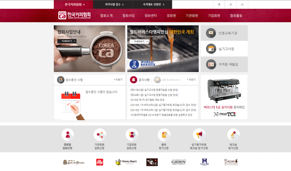 '한국커피협회' 사이트에서 진행/확인 해주시길 바랍니다.