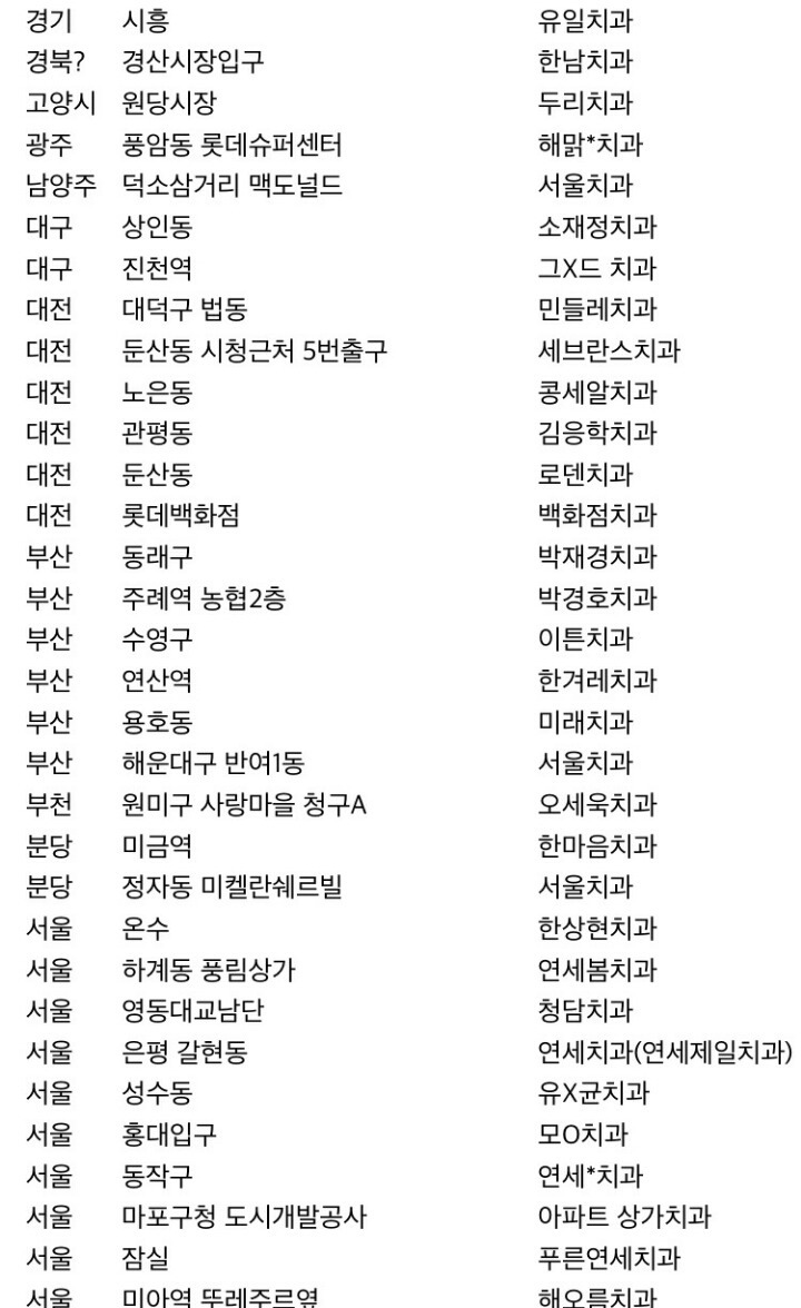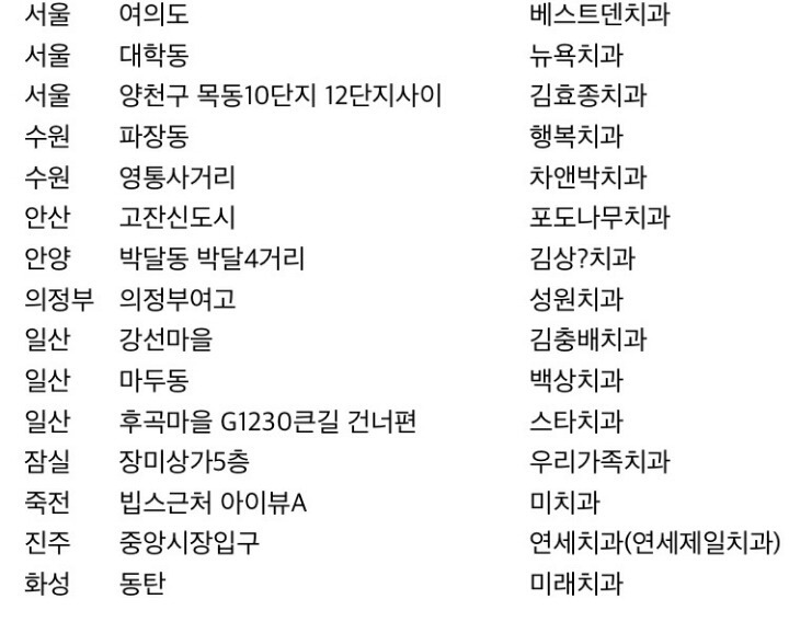 저 리스트에 올려진 치과들이