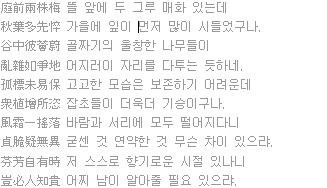 시를 읊으며 홀로 잠 이루지 못해 / 哦詩獨不眠 [선생은 너는 내 피육(皮肉)을 얻었구나 하였다.]