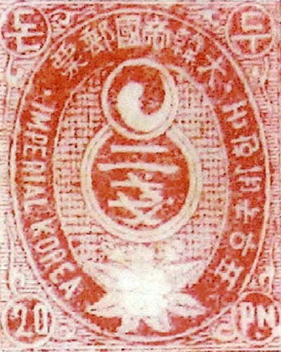 훈장증서 장식 테 문양의 왼쪽에 무궁화 꽃가지가 사실적으로 묘사되어 있다. 부수적인 문양으로 쓰였던 무궁화는 1901년 발행된 이화우표의 시쇄우표(試刷郵票)에서 중심 문양으로 자리 잡는다.