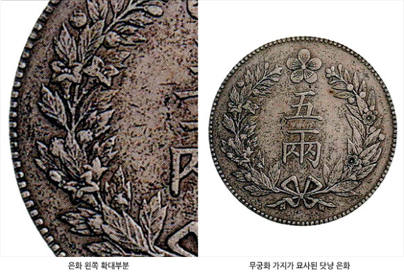 근대에 와서 무궁화는 복식을 비롯한 국가를 대표하는 상징물로 널리 사용되었다. 무궁화 문양은 대한제국기에 개정되는 서구식 군복(軍服)과 훈장, 문관의 대례복(大禮服) 등에 활용되었는데, 처음 등장한 것은 1892년 닷냥 은화에 그 꽃가지가 묘사된 것이다.