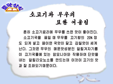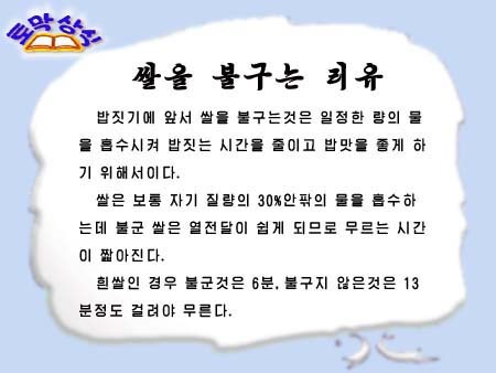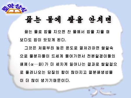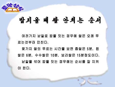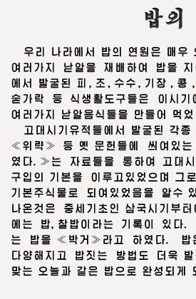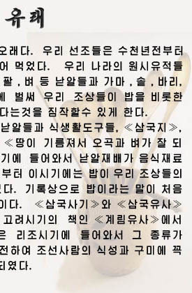 본 자료는 링크 및 주석부분을 제외한 레시피부분은 북한 자료의 북한말 표현을 그대로 사용합니다. 다소 거친 어감이 있더라도 북한음식문화의 표현방법을 그대로 전하고자 하는 취지이니 양해바랍니다. 본 자료는 본인이 모 언론사 북한전문 객원기자로서 북한정보를 연재한 기사 자료 중 일부입니다. 북한말 표현이나 다른 북한음식정보가 필요하신 분은 leesun2@hanmail.com 으로 간단메일 주세요. |