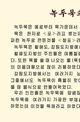 녹두묵은 예로부터 황해도, 강원도 지방에서 유명한 음식이다.