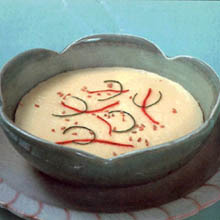 공기에 기름을 바르고 닭알 푼것을 담은 다 음 실파,실고추로 고명하여 약한 불에서 찐다.