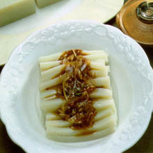 이것을 30분정도 놓아두었다가 1cm두께로 썰어 그릇에 담아낸다.