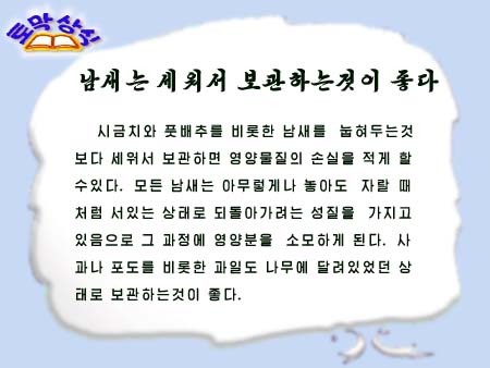 (5) 채소는 세워서 보관하는 것이 좋다.
