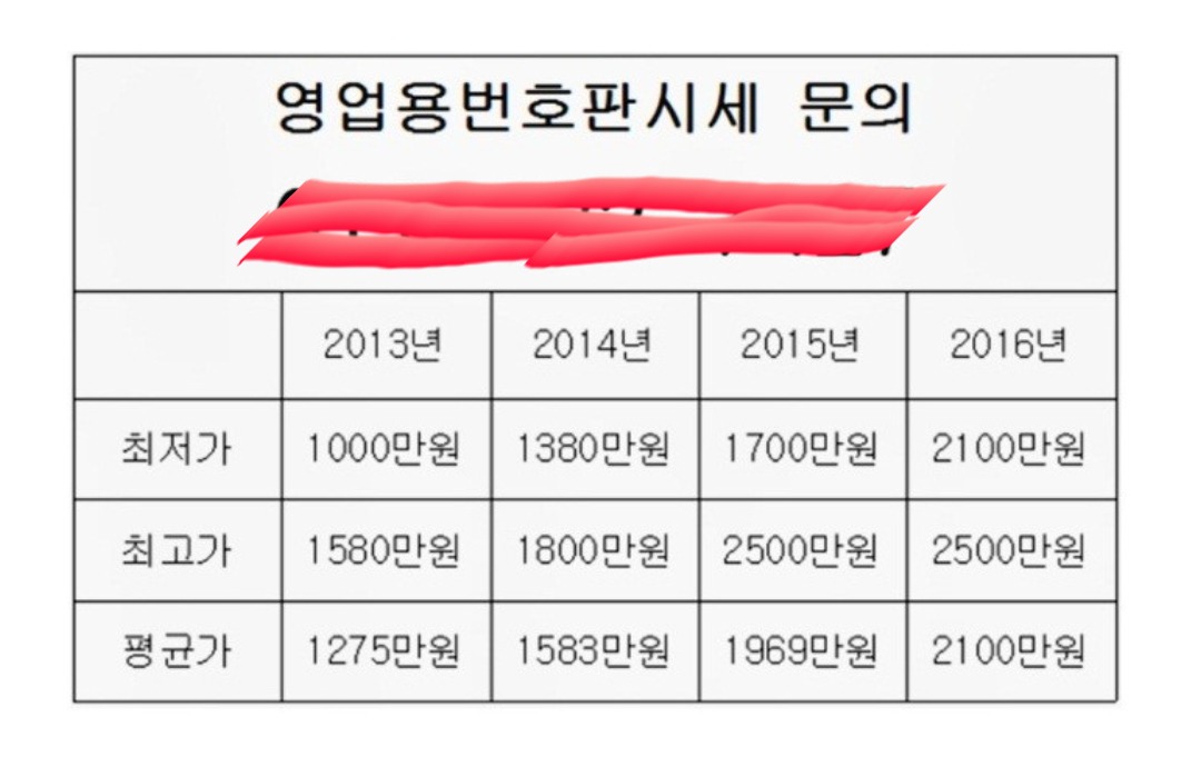 1톤 트럭 영업용 번호판 시세, 년도별,