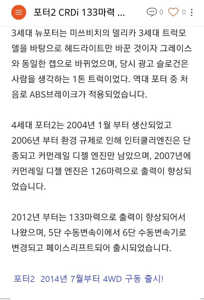 먼저, 포터2 일반캡과 슈퍼캡의 차이점입니다.