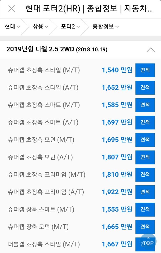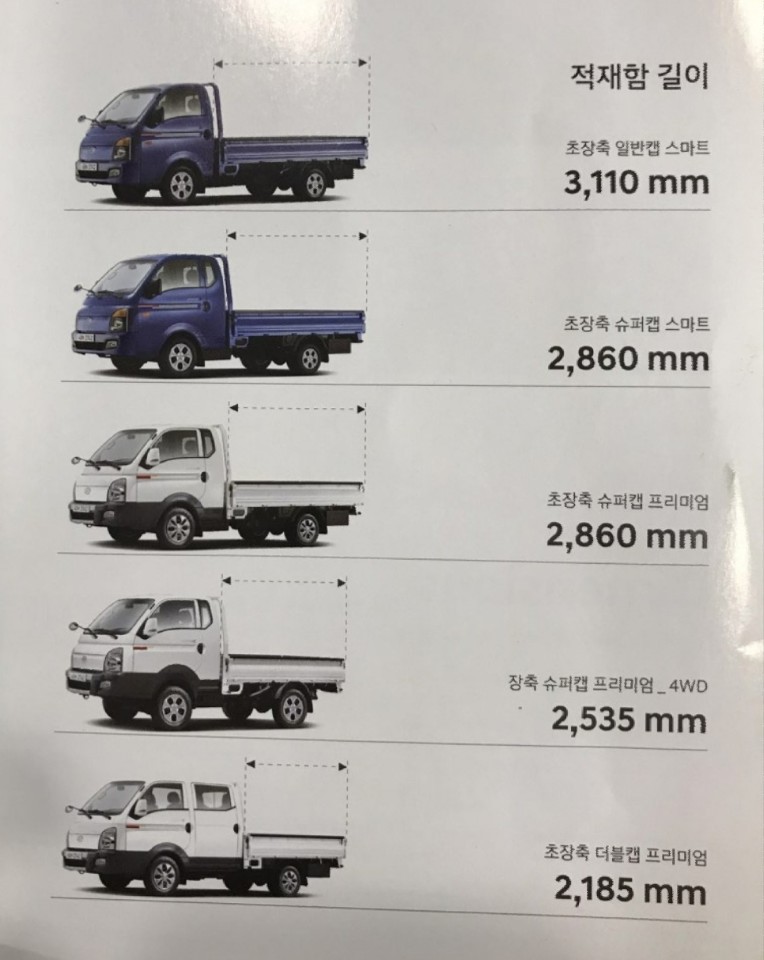 ▒ 포터2 일반캡, 슈퍼캡, 장축 , 초장축, 차이점.