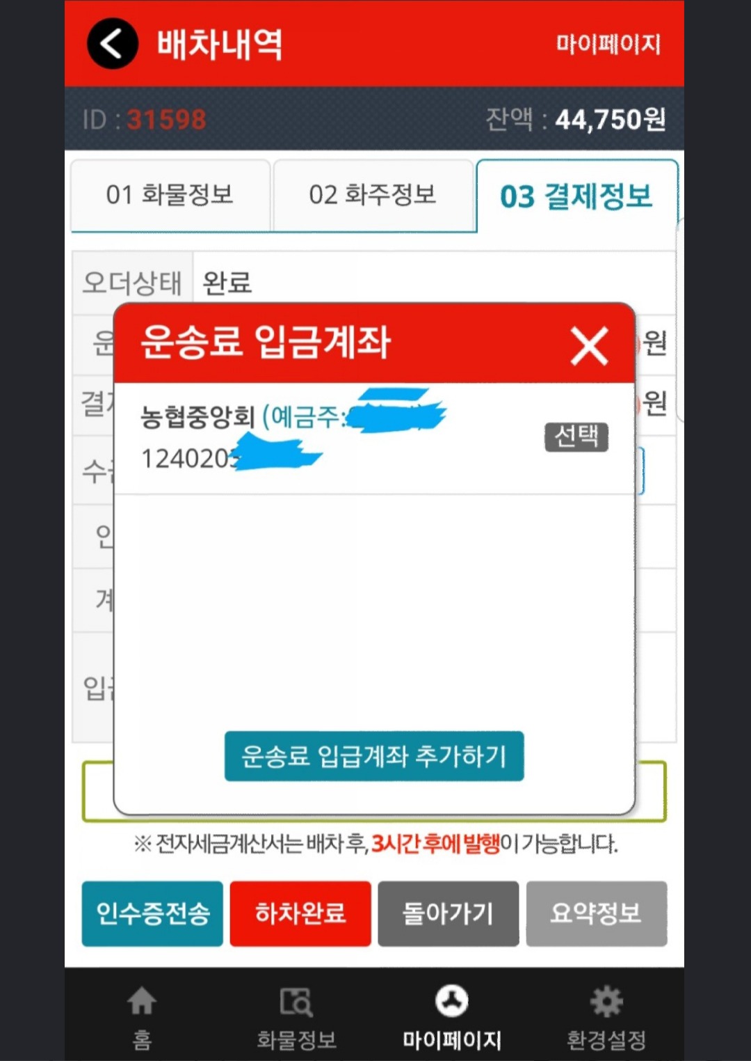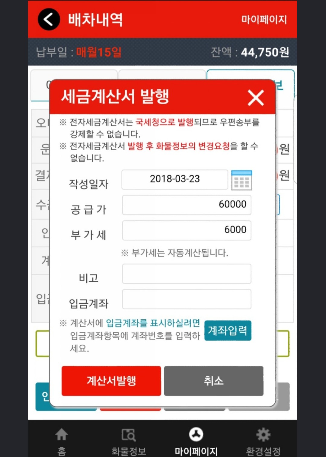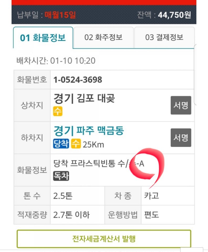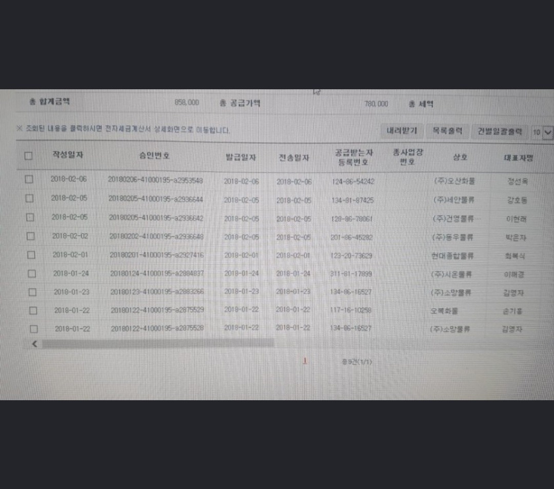 24시콜화물 어플 마이페이지에서 날짜 선택하고, 세금계산서 목록조회 하던지, 또는, 홈텍스 아이디치고 들어가서, 날짜 선택하고, 세금계산서 목록조회하면 된다,