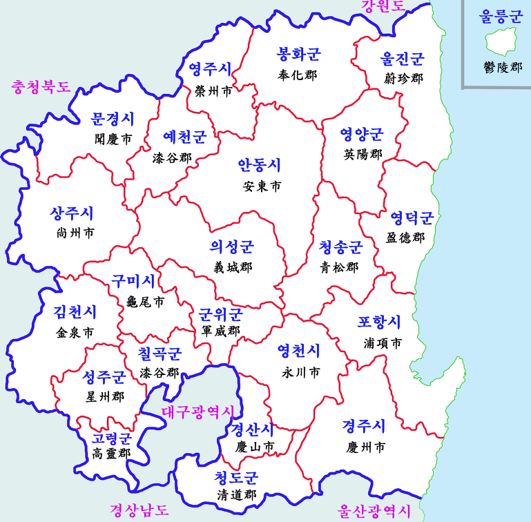 (지사부는 경산부와 안동부인데 이에 소속된 군이 4개, 현이 25개이다.)