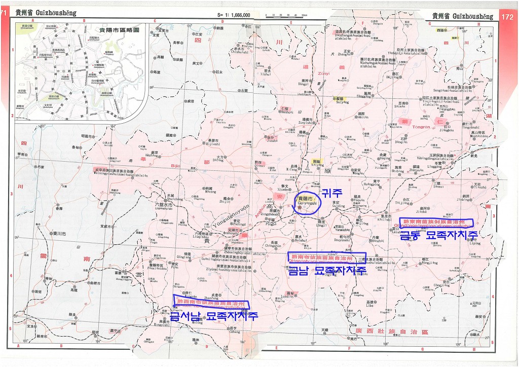 이 귀양을 중심으로 금동 黔東, 금남 黔南, 금서 黔西등의 도시가 있다.