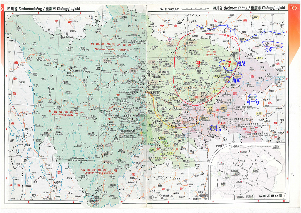 우선 사천성에 중경重慶시가 있다. 이 곳이 통일신라 의 9주 5소경의 하나인 중원경 中原京으로 충주목 忠州牧이다.