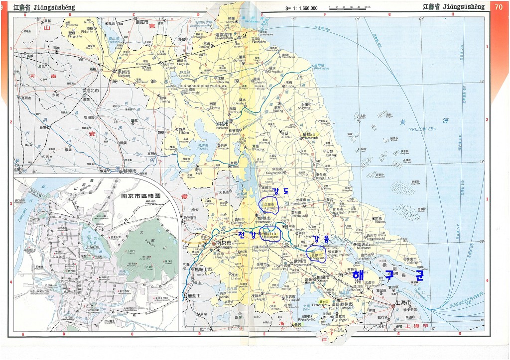 아래 지도는 대륙의 강소성으로 상해시 가 있는 곳이다.