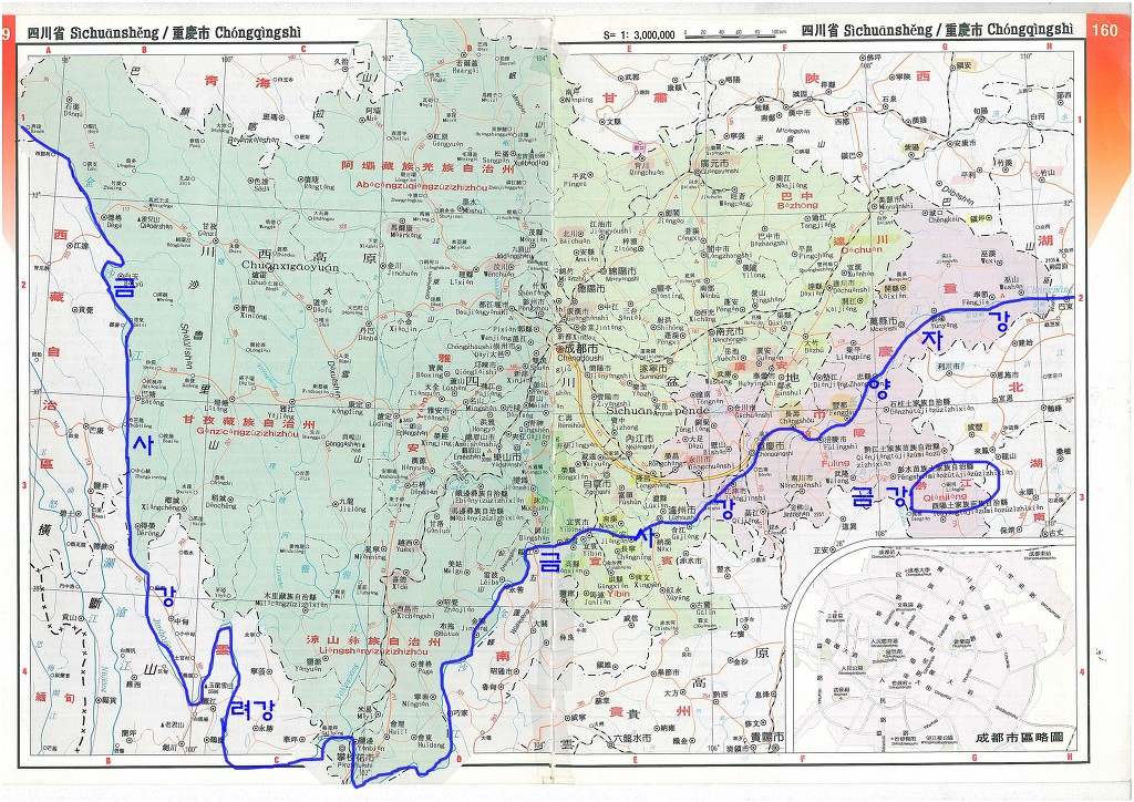-주- 대륙의 사천성은 이번(2008년 봄)에 대지진이 일어난 곳으로 4개의 큰 강으로 이루어져 사천四川이라 불리는 곳이다.