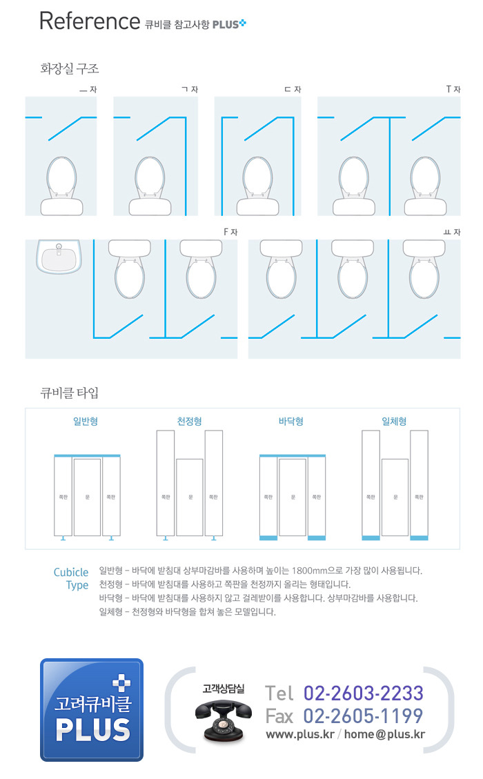 친환경 화장실칸막이 고려큐비클 www.plus.kr 02-2603-2233 FAX 02-2605-1199