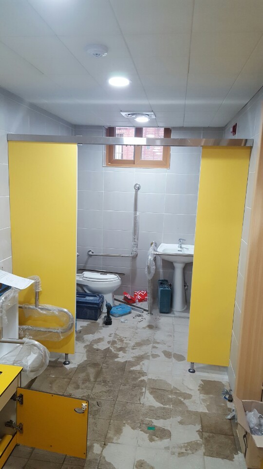 주제는 BF인증 이중 중문 더블슬라이딩 도어(3연동 슬라이딩 도어) 장애인 화장실칸막이 큐비클-서울 강동구 암사동 편입니다.
